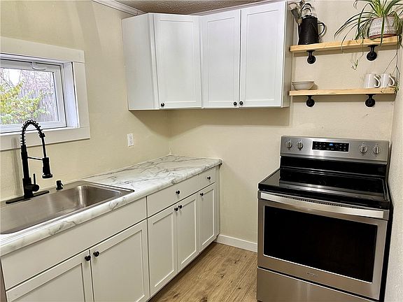 Cute and cozy newly remodeled 2 bed 1 bath cottage in a quiet area near Woodland Park. 2nd bedroom would be perfect for an office or infant. Plenty of bonus space in the one car detached garage which includes an additional shop/storage area. Updated electrical service including new panel, plus updated plumbing. Coat rack cabinet inside front door stays with the home.