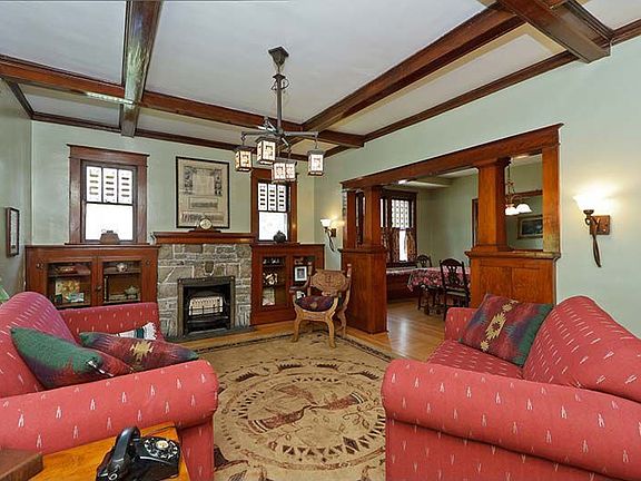 LOOKING FOR ACTIVE LIFESTYLE? WALKING DISTANCE TO HISTORIC MAIN STREET & KATY TRAIL! HUGE 5 BEDROOM - 2 FULL BATH HOME LOADED WITH UPDATES! LOCATION A BONUS! Hardwood Floors and period Millwork throughout! Original Stain Glass Windows, Charming Built-ins, loads of storage. Beautiful Sunroom (newer windows), Great Upper Level Balcony with Patio View, HUGE, Covered Front Porch. One-of-a-Kind Museum Room. Exceptional detail throughout! Updated Plumbing & Electric, ZONED HVAC - A BONUS! Upper Level Family Room! Large, Formal Dining Room on Main Level with Cedar Storage Chest. NEWER commerical sized stove and oven. Entertain on the enormous Patio with beautiful surrounding garden or take them to a Festival around the corner! ALL 5 Bedrooms provide great closet space. Indigenous landscape requires minimal attention with irrigation system. FULL, Dry basement provides excellent additional storage and laundry space. Detached 2 Car Garage. DETAILED LIST OF UPDATES AVAILABLE IN HOUSE.