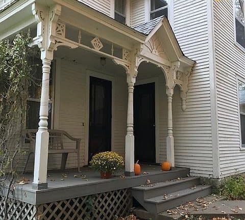 This spacious home on a large corner lot offers potential for additional income from apartment rental. The main house includes 5 bedrooms, kitchen, formal living and dining rooms plus sunroom with deck, pantry, enclosed back porch and a 3/4 bath w/laundry plus (2) half baths. Oak flooring and trim. The remainder of the home currently functions as a 1 bedroom, 1 bath apartment with full kitchen or can easily be converted back to additional living space for the main home. Nice Amish-built gazebo and furniture, open front porch, and detached 2-car garage. All appliances plus Amish-built Murphy bed included. Lots of possibilities!
