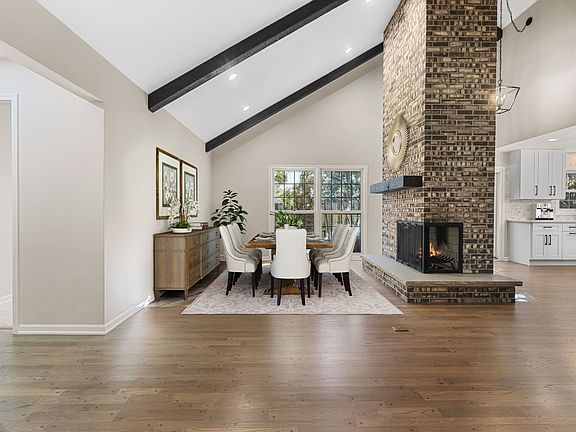 Home for the Holidays! You'll be delighted the moment you walk up to this Beautiful Brick Ranch home in the sought-after Village of Barrington! Sited in a cul-de-sac on a quiet tree-lined street is an incredibly refined home that has been Exquisitely Updated. The foyer is breathtaking while unfolding to soaring vaulted ceilings and an open concept! Just off the entry is an elegant dining room with a 2-story, multi-sided fireplace complimenting the exceptionally tall, vaulted ceilings with exposed beams. On the opposing side of the fireplace is a phenomenal new kitchen with an expansive kitchen island with flowing Carrara Quartz countertops - featuring cabinet storage on both sides. The gourmet kitchen boasts 42" Shaker white cabinets with soft close drawers complete with black hardware, stunning fixtures, upgraded stainless steel appliances with a smart fridge interactive screen, separate beverage bar with built-in fridge, and an additional coffee bar. The kitchen opens effortlessly to a sprawling vaulted family room with exposed beams that showcases a gorgeous new fixture that ideally illuminates the room. The main living space offers newly refinished hardwood floors. Down the hallway is equally impressive, with 3 very generous size bedrooms and 2 new full bathrooms. The Primary suite is exceptional in size, with 3 spacious closets, floor-to-ceiling windows, and a spa-like Primary bathroom, with phenomenal tile work in the shower with a built-in niche. The 2 additional bedrooms share a hall bathroom with double vanities, and a shower/tub combination featuring more gorgeous tile work. In addition, there is a fantastic powder room with stunning tile work and a large completely remodeled laundry room! The finished lower level opens to the main floor with a trendy black brick fireplace with new carpeting, and a 4th bedroom or Den in the lower level! 2-car attached garage! Private fenced yard with mature trees, patio, and shed!! The sidewalk outside the community is a stone's throw to shops, entertainment, restaurants, the Barrington Metra train station, schools, and so much more. WELCOME HOME!