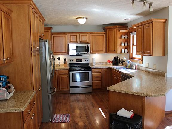Just a few short miles East of Terre Haute in Staunton, sitting on 1.45 Acres, is a must see 2 story all brick home with a WOW factor that is pleasing to the eye. Featuring 3,107 sq. ft. of living space, this home currently has 6 bedrooms, 3 full bathrooms, kitchen, breakfast nook, living room, dining room, and play room. One bedroom on the main level and the remaining 5 are upstairs, with the convenience of a well-designed laundry room on the same level. Each bedroom has a gracious amount of closet space. Wide hallways and one ADA Compliant restroom on each level of the home. All new carpeting, hardwood floor, and fresh paint throughout. 3-car attached garage and a shed in the back. Large open deck in the rear with a chain link fence enclosing a portion of the back yard. Spacious front yard and some woodland in the back. Let's not waste any time. Call Linda Harms or Philip Boor today for your personal tour.