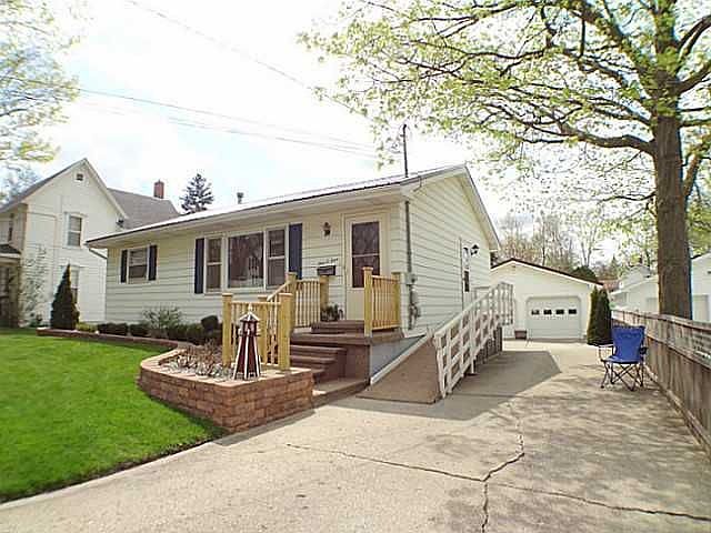 - Welcome to 104 S. Lansing Street in St. Johns with beautiful brickwork landscaping and bushes.- This barrier free ranch home has 3 bedrooms, 2 full baths and a wheel chair ramp.- On the Main floor there is a nice living room, kitchen, 2 bedrooms and one bath.- There are recent updates including: new steel roof in 2010 and 2011, furnace in 2012 and a new kitchen window.- The lower level is a walkout level with a third Bedroom, a summer kitchen and an additional full bath.- There is a convenient covered entrance to the basement & walks out the two car garage & shed in back yard.- This home is convenient to shopping, schools, churches & work. Thank you for viewing the video tour, please call today to schedule your private walk through. Welcome Home!