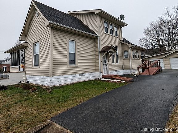 Check out this beautiful home built in 1890 in Scottsburg! This home is full of original woodwork & trim, built in shelves, large open staircase, tall ceilings, formal dining room, large wrap around screened in front porch, paved circle drive, detached garage, and much more. Featuring 3 bedrooms, 1-1/2 baths, over 1400 square feet, and more.