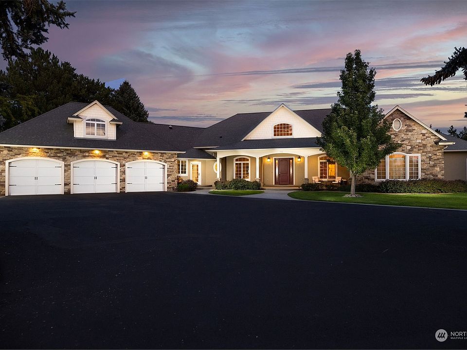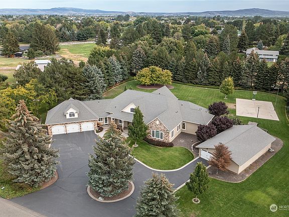 Premier Property on 1.72 acres in the coveted Grasslands neighborhood. Find serenity on the wind protected back patio with the expansive lawn surrounded by mature trees, a water feature, a sport court and garden space behind the separate shop building. The primary bedroom has double sided fireplace which can be enjoyed from the primary bathroom! There are 3 bedrooms on the main floor and a bonus room with closets above the 3 car garage which can be used as an additional bedroom if needed. There are four bathrooms, large pantry, an office and sun room next to the kitchen for an additional lounge area. Separate washer/dryer sets on each end of the home. This home has a warm feel and is designed with a comfortable flow throughout.