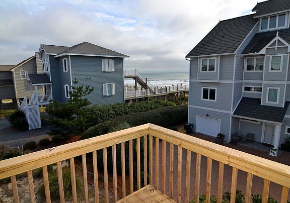 Beautiful and well maintained flag lot ocean front home with great views of the Atlantic. Home features a large kitchen complete with granite counter tops galore, ocean side living room with gas log fireplace, roomy master suite complete with private bath featuring jetted tub and shower, one covered deck and one uncovered deck to name only a few. From top level of this reverse floor plan home you can literally gaze at the shore birds over the ocean from the kitchen, living area and dining area and as an added bonus two oceanside bedrooms including the master offering comparable views. The home is located in the sought after community, The Village Of Stump Sound, featuring ocean front clubhouse/pool complex, tennis courts and small kayak/boat launch on the sound.
