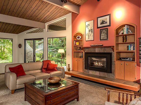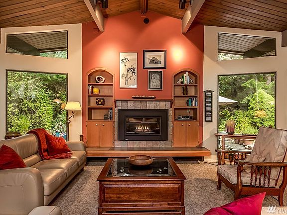 Unique and beautiful home in a tranquil woodland setting 1+ acre. Nice craftsmanship in this spacious, cozy home, with warm wood throughout. Charming master suite with adjacent den/office area, and luxurious artsy master bath. Large media/gathering room. Rich, light-filled spaces and floor-to-ceiling windows to enjoy privacy, birds, gardens and greenery. Dream shop with fireplace, centralized air cleaning and upper loft/studio space. Many custom touches throughout, must see!