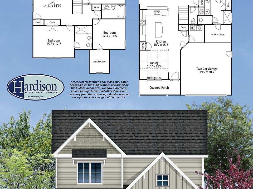 Welcome to the Sea Breeze by Hardison Building! Lovely on the outside with curb appeal, a covered front porch, and a covered back porch. And STUNNING on the inside! Walk in and see that formal dining room with it's on trend trim work. Move into the kitchen and take it all in! The island, the QUARTZ countertops, the customizable pendant lights, the white staggered cabinets, the soft close drawers, the subway tile, the stainless appliances...all of these create a wonderful chef's kitchen just waiting for you. Ease on in to the living room and fall for the charming gas fireplace and the soaring vaulted ceiling. Then it's on to the Owner's Suite. Just wow! This large bedroom has a fantastic tray ceiling and the en suite bath is awesome. With it's large tiled shower and it's very own linen closet, it's sure to please. Upstairs, you will find three more bedrooms AND a loft area. One bedroom has it's own en suite bath and the other two share another full bath. While the loft area is just perfect for any number of uses. You'll adore the fully tiled owner's-bath shower, the LVP flooring throughout the entire first floor, the solid surface countertops in the kitchen AND the baths, the gas fireplace, the lever handles on front and back doors, and the sod in the front AND on the sides of the house.