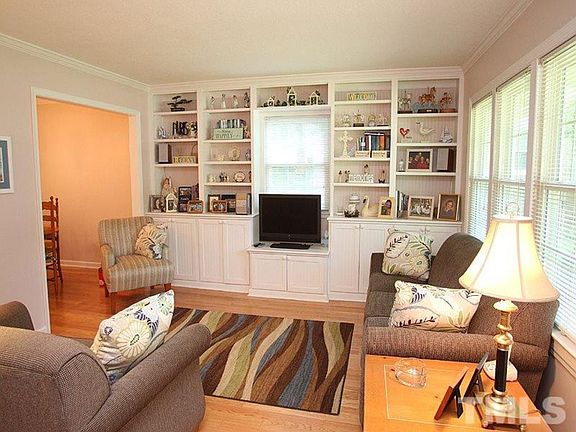 Beautifully updated ranch that is approx. 60% brick. You will love the built ins! Hardwoods everywhere but kitchen and baths. Kitchen updated in 2009 with new cabinets and quartz counters. Corner glass cabinet. Built in pantry with pull outs. Lazy Susan. Tile backsplash. Bathrooms updated. New roof in 2011. New Trane Heat Pump with new duct work 2011. Fans in all bedrooms. Detached storage shed. Cul-d-sac lot with fence. Convenient to shopping, schools, I40! Must see!