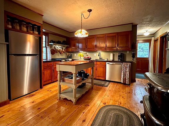 HIGHLY MOTIVATED SELLERS!!! 3-bedroom, 1.5-bath ranch with barn sits on 4 scenic acres and offers single-floor living with thoughtful updates. A large open flow connects the kitchen, dining, and living room, creating an ideal gathering space. The remodeled kitchen features new honed granite countertops, sink and fixtures, appliances, and refinished cabinets. An antique wood cookstove with floor-to-ceiling copper backing and a cozy fireplace in the living room add warmth and charm. Fresh paint, new lighting, and new stairs off the back door complete the updates.