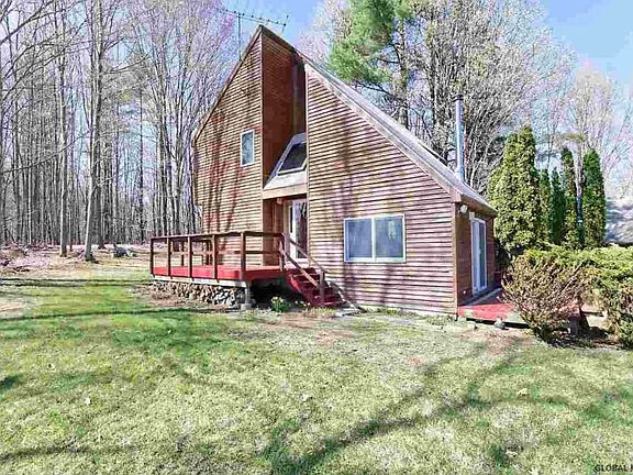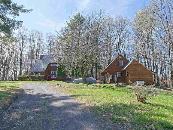 Motivated seller!!! SPECTACULAR views of Cossayuna Lake and rolling hills of beautiful Washington County! Enjoy as a year-round home or a mountain getaway! This 3BR contemporary style home (1,410 sq. feet) also has a detached finished cottage with an additional approx, 1,000 sq. feet- perfect for your guests to stay! Total privacy on your 18.6 acres- with trails through the woods that lead to a secluded smaller outbuilding with heat/electric! Features: pine wood floors, high ceilings, open concept floorplan! Located approximately 40 minutes to Saratoga Springs and close to skiing in Vermont! HUGE bonus- SPECTRUM high speed internet/cable being installed. Argyle School District.