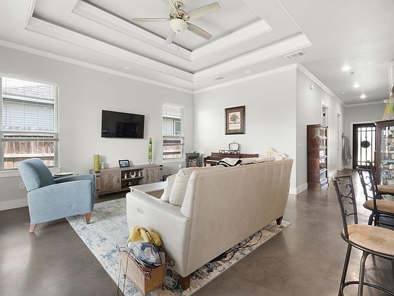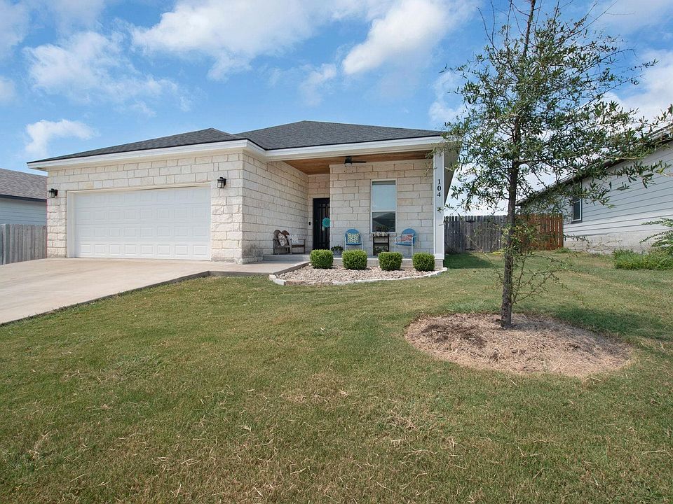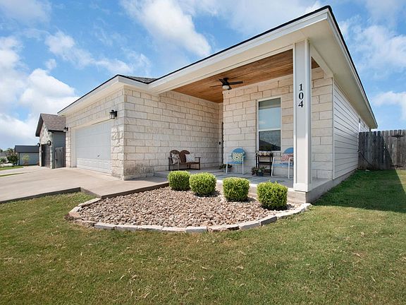 Welcome to 104 N Thomas Cove — a beautifully maintained 4-bedroom, 2-bath home tucked away on a quiet cul-de-sac in the heart of Burnet. Built in 2020 and sitting on a generous lot, this property offers both privacy and charm with a simple, thoughtfully landscaped yard that’s ready to enjoy or customize to your liking. Step inside to an inviting open floor plan featuring 10-foot coffered ceilings, stained concrete floors, granite countertops, and built-in stainless appliances. The spacious kitchen flows seamlessly into the living and dining areas, making it perfect for entertaining or everyday comfort. The primary suite boasts a large walk-in closet and a spa-like bathroom retreat. Outside, you’ll love the covered back patio and the peaceful, family-friendly neighborhood. Located just minutes from local schools — including Burnet High School, Middle School, and Elementary — this home is ideal for those looking for convenience without sacrificing space or style. As part of the Highland Oaks community, you’ll enjoy access to a nearby playground, sidewalks, and minimal HOA dues. With its ideal location, quality finishes, and functional layout, this home is truly a standout in today’s market.