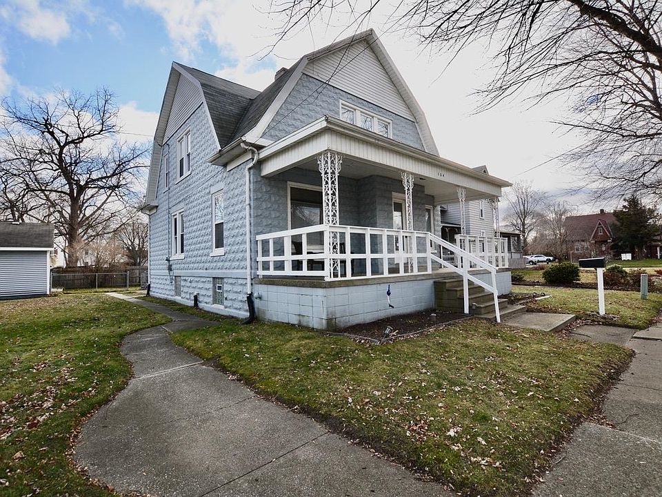 3-bed, 1.5 bath on corner double lot. Featuring beautiful hardwood floors, screened-in porch, and a perfect blend of modern updates and historical charm. Newer roof provides peace of mind, and the full basement will take care of all your storage needs. Stepping into the open entryway (with cozy fireplace!) you'll be welcomed with large windows throughout that let in plenty of natural light. Other highlights include pantry, office, recently painted interior, fenced-in yard, and two generously sized living areas. Each bedroom has a walk-in closet. Basement has B Dry System and sump pump
