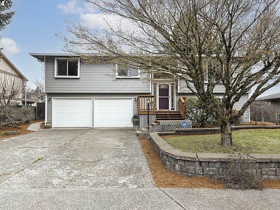 Spacious 2 level home on a QUIET dead end street. New exterior paint. Open living area provides great family space leading to 17' x 16' newer deck with stairs to fenced backyard. Laminate flooring throughout. Kitchen with island/eat bar, pantry with pullouts, garden window, and fridge included. Gas fireplace. Lower level family room with certified wood stove insert and bonus room with window could be an office, 4th bedroom or storage. Laundry and half bath. Extra deep garage. Newer electric panel. Gas furnace and central air. Back deck is plumbed for natural gas. Fenced backyard has room for a garden. 3-sided covered structure is perfect to store gardening supplies and/or wood for a fire pit or the wood burning family room wood stove insert. Water feature may need a little tune up, but would be a gorgeous focal point with some fresh plants come spring and summer! Small patio is hot tub ready. Workshop/tool shed under the deck with windows, power, and concrete floor. [Home Energy Score = 7. HES Report at https://rpt.greenbuildingregistry.com/hes/OR10028262]