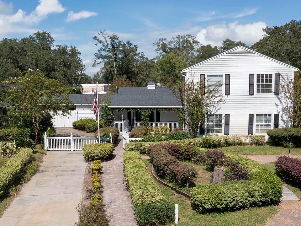 Amazing property, with lush gardens and endless possibilities. Located in Downtown St Marys, the home has 4 bedrooms, 3 full bathrooms and 1 half bathroom. The oversized main bedroom, is located on the main floor with its own ensuite. There is an additional office space in the main house with its own private entrance. 3 additional bedrooms are located upstairs with their own separate entrance, driveway and 2 full baths. There is a laundry in the main house and another under the outside stairs leading to the second floor. Upstairs is also accessible via the stairs inside the front door. Beautiful sun room with floor to ceiling windows. Library with built-in craftsman bookcases. Kitchen with granite countertops. There is a separate building that could be used as a large office or man-cave. There are 2 separate HVAC units as well as a separate mini-split for the upstairs. The primary bedroom and separate building also have their own air conditioners. There is a work shop adjacent to the home and a rear entrance to the property with an electric gate and its own carport. The home is on city water and also has a well for irrigation of the grounds and garden. No HOA! This home is being sold "as is" and is priced to sell.