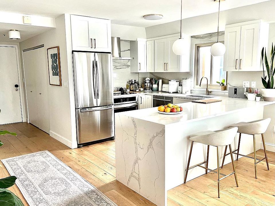 Fully renovated in 2018, this downtown Stamford condo is move-in-ready and comes with the following high-end features: -newly designed kitchen with high-end quartz countertops, induction stove top, custom porcelain backspalsh, custom cabinetry and built-in wine cooler -stunning wide-panel engineered hardwood floors throughout -smart Nest Thermostats in every room with newly installed radiators -2 brand new bathrooms with porcelain and marble tile throughout and Delta shower systems -renovated laundry room in 2021 and installed a porcelain tile floor, custom shelving, and brand new water heater (55 gallon water heater with smart feature which can connect to phone) -smart lock (wi-fi controlled) installed on front door in 2021 -all closets come with custom storage design -master bedroom has custom blackout shades made-to-fit windows all new light fixtures and switch panels There is really no other apartment in downtown Stamford like this one! Would be great as a primary downtown residence or as an investment rental property. Condo is walking distance to the following downtown attractions: -Bedford downtown restaurants -Target! -Uconn Campus -Mill River Park -Scalzi Park -Stamford Train Station -Stamford Mall
