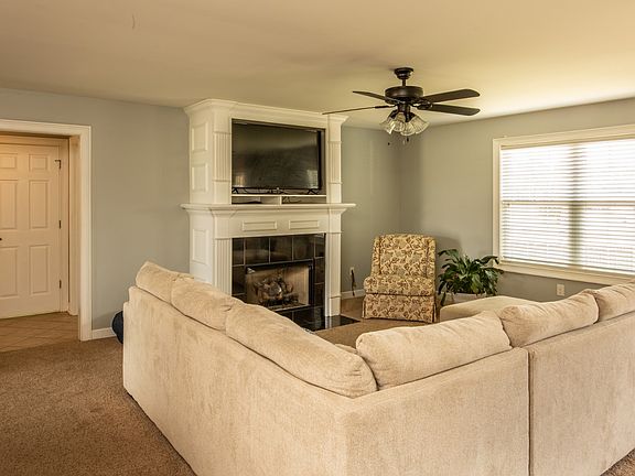 This ideally located full brick home, sits on a great .50 acre lot, with fenced in backyard. Featuring a large deck, 2 car garage, and perfect open floor plan for entertaining. There are two main bedrooms on opposite ends of the house with en suite baths. One of the main baths boasts a large 5x11 tiles walk-in shower. Additionally there are two bedrooms tucked back off of the kitchen, sharing a bath - great space for an at-home office. The living room features a fireplace and built-in bookcases. The kitchen has a pantry, recessed lighting, stainless steel appliances, a built in desk which could be used as a serving area, and a double oven.The cul-de-sac provides for great parking when entertaining, and allows for kid friendly bike riding.