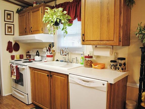 Beautifully landscaped corner lot with shade trees and privacy hedges! Two covered porches! Handicap ramp access! A bed/bath at each end of the home with tub/showers. All appliances stay. Well-maintained 1989 Skyline 24x48. Upgrades since 2011 include gas hot water heater, electric stove, range hood, dishwasher, paint, carpets, some new windows, screen door, deep kitchen sink, etc. See 35 pics! Lot rent includes cable tv, pool, and amenities.