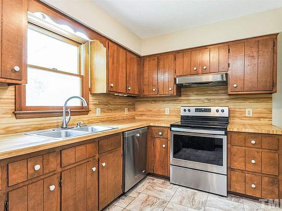 This Fuquay Varina one-story home offers a wood burning fireplace, a master bathroom step-in shower, and a one-car garage.