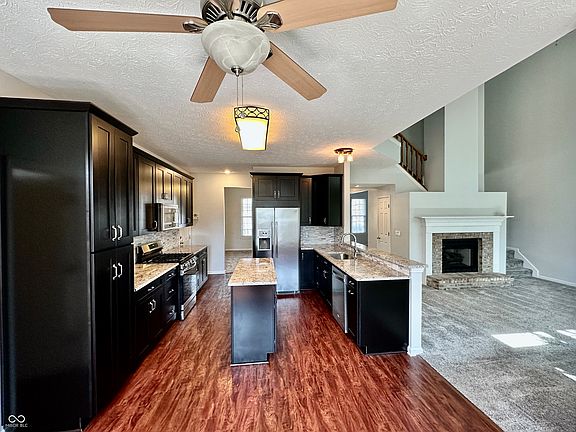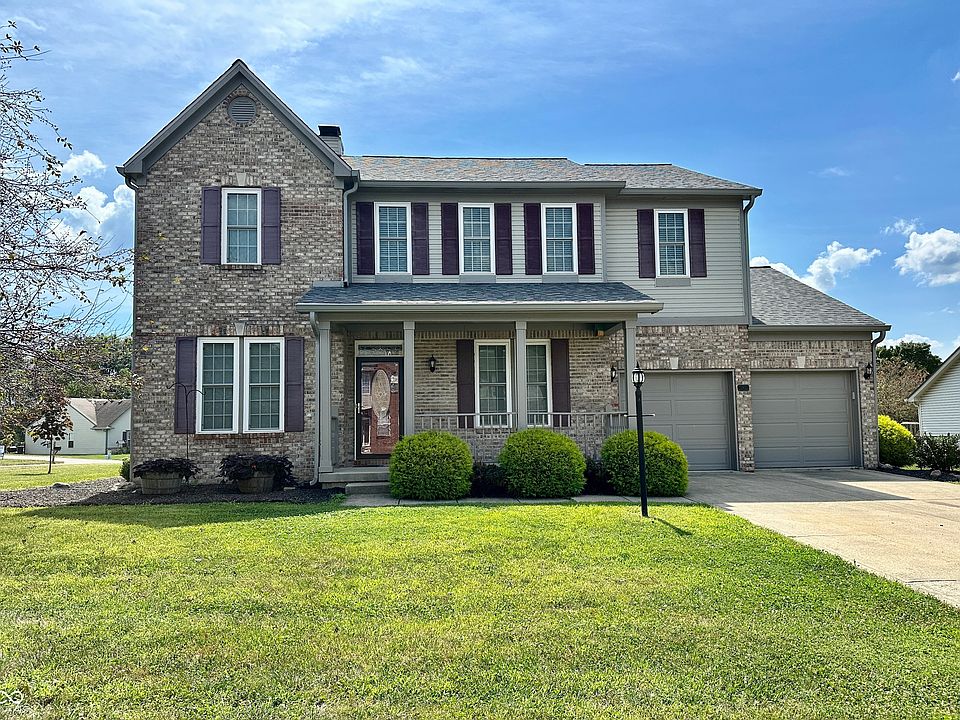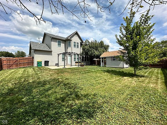 This stunning 2-story home is perfectly situated on a corner lot, offering a large, fenced-in backyard with an inviting patio that's ideal for BBQs, outdoor play, and relaxation. Just a short walk to the neighborhood playground, and a quick drive to local restaurants and shopping, you'll love the easy access to everything you need. Plus, the Indianapolis airport is just 15 minutes away! Step inside, and you'll be greeted by a breathtaking 2-story great room filled with natural light pouring through expansive windows. The open-concept design seamlessly connects the living space to a gourmet kitchen, complete with sleek granite countertops, top-of-the-line appliances, a center island perfect for meal prep, and a convenient breakfast bar for casual dining. Hosting guests? The main floor also features a full bath for added convenience. Upstairs, the primary suite is nothing short of luxurious. Spacious enough to accommodate a king-sized bed and a cozy sitting area, this retreat includes an ensuite bathroom that feels like a spa-featuring a double vanity, a deep soaking tub, and a walk-in tile shower. The second-floor laundry room makes chores a breeze! With a brand-new roof and gutters installed in 2023, newer carpet/flooring throughout and a deep 2-car garage for all your storage needs, this move-in ready home is just waiting for you to make it your own!