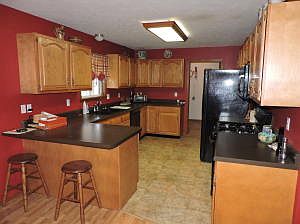 Pretty 4 bedroom, 2 bath brick and vinyl home near schools. Big living room with gas fireplace. Nice kitchen with oak cabinets. Den. Walk-in closet in master bedroom. Covered deck. Privacy fence. Includes new generator. Private backyard overlooking farm land.