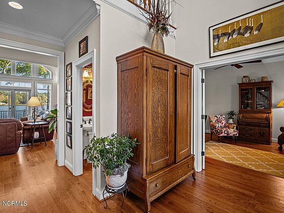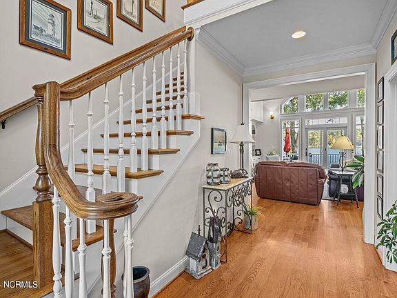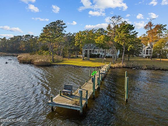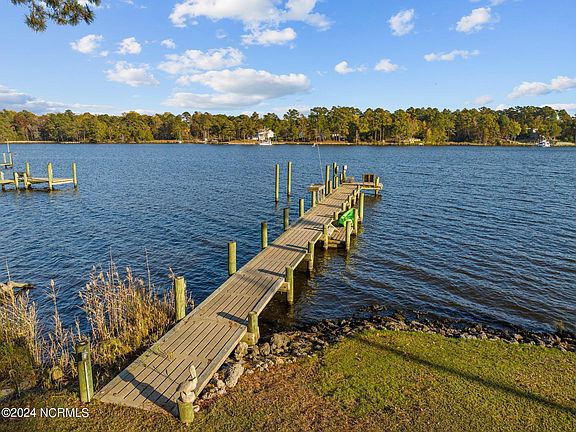 Amazing 3,054 heated square foot waterfront home that checks all of the boxes for anyone looking for the perfect property on the water halfway between New Bern & Oriental! This 3 bedroom, 3 1/2 bath beauty offers the best Foyer that I have ever seen with 18' vaulted ceilings, a beautiful study on the right and a gorgeous stair case to the left with a powder room on the right as you enter the massive living room that also has huge vaulted ceilings with built-in bookcases surrounding the cozy gas-log fireplace with open vistas straight ahead over the broad expanse of Beard Creek! The kitchen is every cook's dream with gorgeous granite counters, a high-end Viking gas range with vent hood, wall oven & microwave, dishwasher, appliance barn, tile backsplash & recessed lighting! The dining area has a splendid Bay window overlooking Beard Creek! The waterfront deck is to die for, but the waterfront screened porch will make you think that you have died and gone to heaven! The 100' concrete boat dock offers a step-down platform for launching kayaks, canoes & paddleboards with a deep-water boat slip and a fish-cleaning station for fish & crabs that you can catch right from your own boat dock! The second floor offers two spacious guest bedrooms each with their own ensuite bathrooms separated by a generous loft sitting area overlooking Beard Creek! There is also a huge finished bonus room upstairs ideal for a game or exercise room! All the downstairs flooring is solid oak hardwoods except the carpet in the master bedroom and tile flooring in the laundry & bathrooms! The HVAC system is zoned with the upstairs having a conventional heat pump and the first floor has central AC with a propane gas furnace, This home has two Rinnai tankless propane hot water heaters for that instant hot water as soon as you open the tap! Also featured is an 8 KW gas generator (Generac)! Generous 2-car garage/workshop & concrete driveway! Nothing Could Be Finer!