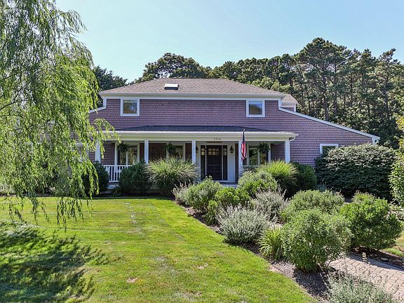 Don't miss the perfect opportunity to make this beautifully sited contemporary Cape in Brewster's very private and convenient, Owl Pond neighborhood, your new best home! Magnificent grounds, lush landscaping and an evergreen perimeter lend an open yet very private feel to this most desirable property. Built by Eastward Homes, this 3+ bedroom, 3.5 bath home has been recently updated and always well-maintained. Bright and cheery, sun-filled and move-in ready. The main floor boasts a cathedral ceilinged living room with walls of windows, an expansive open kitchen/dining with abundant granite counter space, bar with wine cooler, sliders to the back deck, hot tub and fire pit. A cozy den/ home office and a lovely primary bedroom with walk-in closet, en suite bath and a glorious walk in shower round out the main level. Upstairs are two large bedrooms & a full bath. The finished lower level offers a huge family room with sliders to the yard, a full bath, laundry and additional office/ guest space. An impeccable, detached over-sized garage/workshop for the automotive, boating or woodworking enthusiast, with organized storage, spotless epoxy floors and unfinished bonus space above.