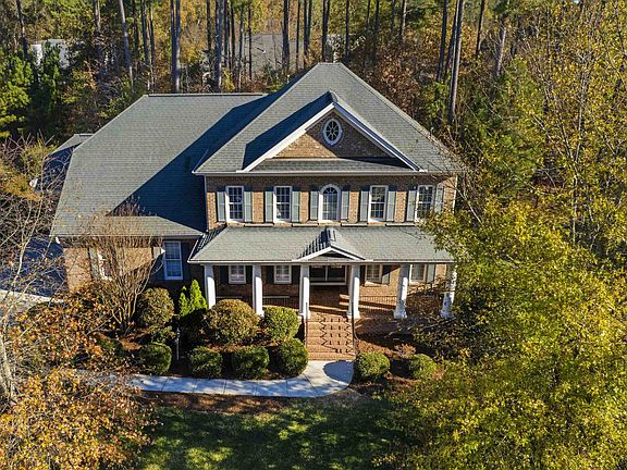 Elevated style and convenience are tailored into this sophisticated package for a refined buyer! A manicured front lawn, posh brick exterior and nearly 300-square foot porch greet you upon arrival. This 4-bedroom, 3.5-bathroom classy executive home offers a sizable driveway and 3 garage bays, providing spacious parking, storage or studio. Gorgeous hardwoods invite you into a lovely office or formal dining room before making way to the expansive two-story living room appointed with a wall of towering windows, cozy fireplace and wet bar. An entertainer's delight, the open-concept kitchen features a Wolf 6-burner gas stove, stunning herringbone backsplash and granite counters. The main-level Owner's Retreat is fully loaded with vaulted ceilings, spa bath and easy access to the private screened porch and back deck. The second-floor loft and third-floor walk-in attic offer myriad possibilities. Southpoint Manor features fabulous neighborhood amenities as well as proximity to Research Triangle Park, RDU Airport, Durham and Chapel Hill. This property is one to fall in love with!