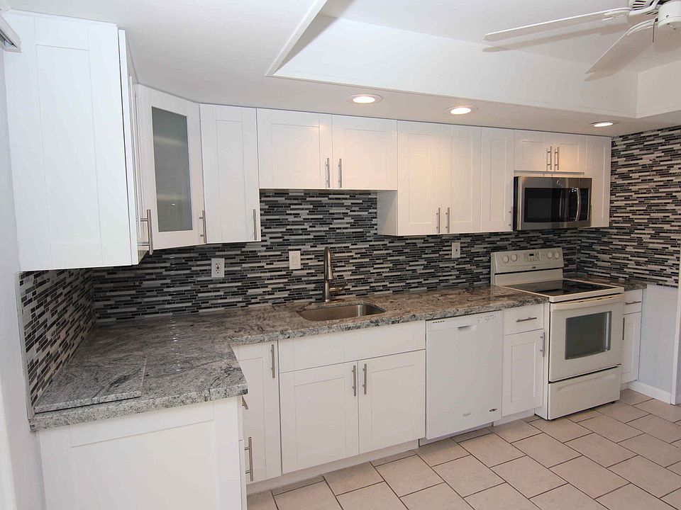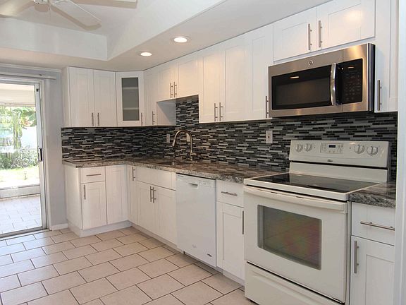 Immaculate EAST BOCA Duplex in area of expensive homes! Gorgeous GOURMET KITCHEN w/high end finishes including white wood Shaker cabinets, GRANITE counter tops and sizzling GLASS MOSAIC back splash. Two nice-sized bedrooms + TWO TOTALLY REMODELED BATHS with beautiful tile & wood vanities. Check out photos. Screened-in 13x10 porch + patio, BIG fenced yard, washer/dryer, hurricane shutters. Small pet under 20 lbs OK. Quiet location on side street w/friendly neighbors. Close to beach, Downtown Boca & Downtown Delray. Local landlord looking for long term tenant.