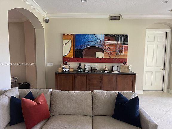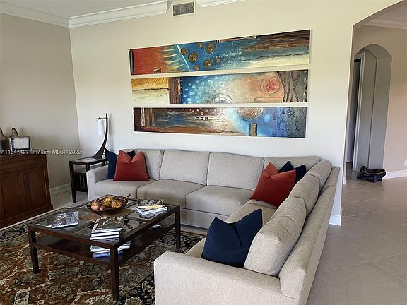 GROUND LEVEL (1) FLOOR, PRISTINE COACH HOME IN PALM BAY CLUB SOUTH. THREE BEDROOMS, TWO FULL BATHS PLUS A CUSTOM-BUILT OFFICE/DEN. THIS UNIT IS FULLY UPDATED AND SHOWS LIKE A MODEL. UPGRADES INCLUDE: GLASS ENCLOSED SUNROOM OVERLOOKING FABULOUS LONG WATER VIEW, HURRICANE IMPACT WINDOWS, CROWN MOLDINGS, GRANITE COUNTERS AND PULL-OUT SHELVING IN KITCHEN, CENTRAL VAC, CUSTOM RESIN GARAGE FLOOR WITH STEEL STORAGE CABINETS & BUTCHER BLOCK WORK BENCH, NEW TOILETS & SPLASH SHIELDS IN SHOWERS, CUSTOM MADE BUFFET WITH (2) 48 BOTTLE WINE FRIDGE, NEW CEILING FANS. PALM BAY HAS IT'S OWN CLUB HOUSE & POOL. THIS HOME IS BEING SOLD FURNISHED AND IS AVAILABLE WITH A COVETED SOCIAL MEMBERSHIP THAT CAN BE UPGRADED TO TENNIS, SPORTS OR GOLF. BRAND NEW ROOF, ALREADY PAID FOR, COMPLETED BY APRIL 2023
