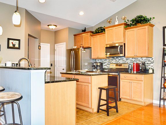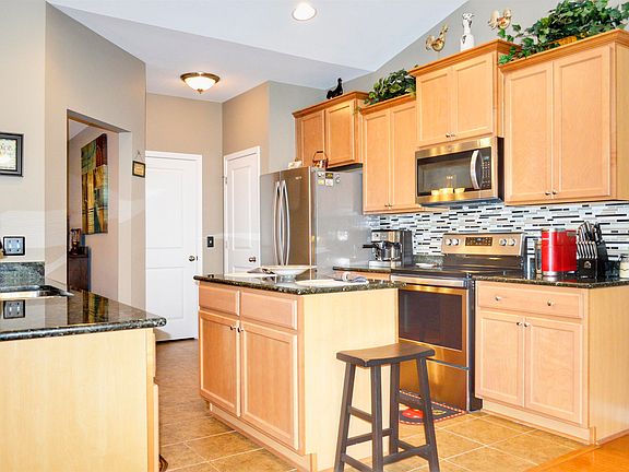 - Features: Breakfast Bar, Kitchen Island, Pantry, Stainless Steel Appliances, Solid Surface Counters