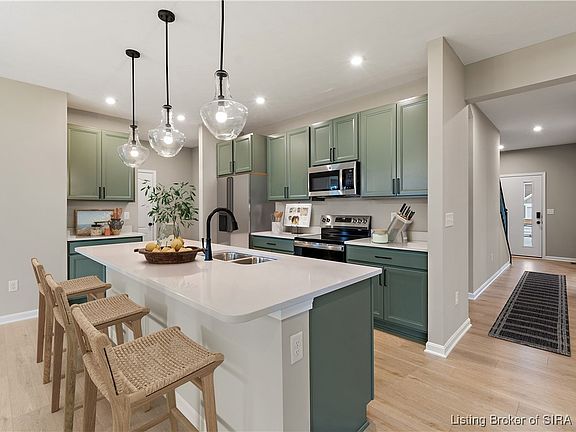 Stylish new Jensen Modern Retreat plan by Fischer Homes in beautiful Meyer Meadows featuring two private 1st-floor study with double doors. Open concept best describes this home with an island kitchen with stainless steel appliances, upgraded cabinetry with 42-inch upper and soft close hinges, upgraded counters, a large walk-in pantry, and walk-out morning room all open to the large family room. Study with French doors in the back of the home for a total of 2 studies. Upstairs you'll find the homeowners retreat with an en suite with a double bowl vanity, soaking tub, separate walk-in shower, and walk-in closet. There are 3 additional bedrooms each with a walk-in closet, a centrally located hall bathroom, loft, and a convenient 2nd floor laundry room. Full basement. 2 bay garage. Start Date: 10/15/2024