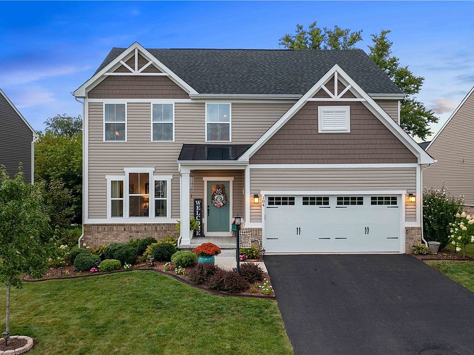 Welcome Home to 104 PAULINE PL situated on a lovely level lot backing to woods in the Peachmont Farms community of Evans City!! This designer-inspired home built in 2018 has been Luxury Upgraded throughout! FEATURING an inviting Rustic Contemporary Open Living Concept, 2-Story Entry, Rod Iron railings, Stone Fireplace & Custom RH inspired fixtures + finishes! The entertainer’s Kitchen + Morning Room boast a massive Island, Granite CTops, Breakfast Bar, Backsplash, SSteel appliances, & Pantry! **First Floor Master Suite boasts a tray ceiling, crown moulding, walk-in closet, & expansive bath w/ dual vanity! **Main Level Office w/ French Doors! **Upstairs offers 2nd & 3rd Bedrooms + Family Room/Flex Space! **New 16x16 Trex Deck provides a perfect space for enjoyment of the wooded views out back + Level Backyard! **Peachmont Farms offers peaceful wooded surroundings + sidewalks throughout — Located just minutes from Cranberry Twp amenities, Rt 228, I79, Parks, & Seneca Valley Schools!