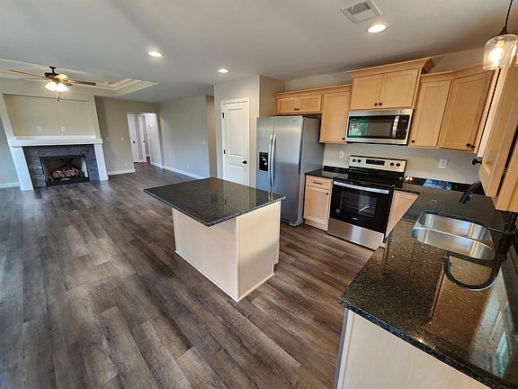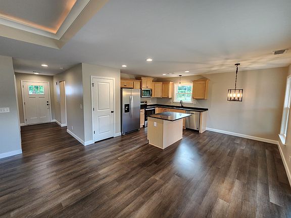 New construction 3 BD 2 BA with Granite tops and island in kitchen,Stainless applances and comes with Refrigh.Stone fireplace Double sinks and stand up shower in Master bath. Covered 12x12 patio on back. Many more extras.