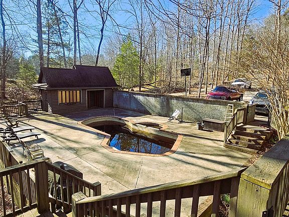 A Rare High-End Fixer-Upper Opportunity on 5.69 Acres of Privacy and Potential Discover an exceptional chance to transform this private, spacious estate into a luxury retreat. Set on 5.69 beautifully balanced acres—partially cleared for practical living and heavily wooded for natural serenity—this property offers the ideal canvas for a high-end renovation or custom reimagining.A long setback from a quiet road leads to a circular driveway, parking pad, and carport. The side-yard pool area, complete with pool house and generous entertaining space, is ready to be elevated into a true outdoor oasis. Additional structures include a custom pull-through motorcycle garage/workshop, a 40x40 workshop with its own electric meter, a storage shed, a two-story “she shed,” and an outbuilding perfect for toy or equipment storage.Nature lovers will appreciate the approximate half-mile hiking trail encircling the property, the cleared and fenced areas, and the expansive backyard. Recent upgrades—such as a new well pump, pressure tank, and water filtration system—provide a solid foundation for future improvements.Inside, the home showcases unique custom craftsmanship, including rich wood trim and a striking staircase. The layout offers flexibility: enjoy the main-floor primary bedroom or convert the lower-level recreation/guest/bath area into a private suite. Two spacious upstairs bedrooms each feature a private balcony overlooking the grounds. Large windows throughout the home were intentionally placed to maximize natural views.Fresh paint, new stainless steel appliances, and new carpet complement the existing hardwood floors and woodwork, giving you a head start on updates. The impressive stone fireplace in the great room serves as a beautiful focal point—perfect for ambiance and seasonal décor. A new roof was installed in 2018.This property is ideal for buyers seeking a luxury renovation project with acreage, privacy, and endless potential. With its rare combination of land, structures, and custom features, it’s ready to be transformed into a truly remarkable estate. Disclaimer: CMLS has not reviewed and, therefore, does not endorse vendors who may appear in listings.