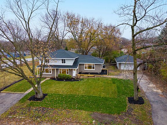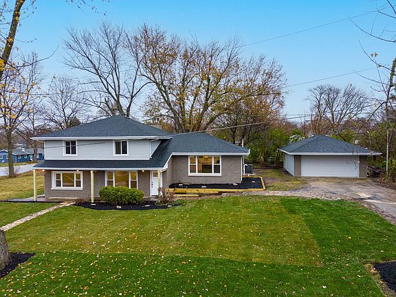 Step inside and be amazed by this MASSIVE two-story show stopper with five bedrooms and two bathrooms. Located on a desirable corner lot, this home has been completely remodeled in 2022 from top to bottom. The exterior features include a brand new roof, gutters, fascia, windows, and skylights for natural light. Every functional component of this home is brand new including: HVAC, electrical, plumbing, and hot water tank + softener. This home includes a wide open main floor plan as well as a grand family room with gleaming hardwood floors throughout. Four large bedrooms on the top floor and a stunning spacious second floor bathroom with a Jack and Jill sink. This home also has a first floor master suite, which is carpeted for comfort with a big walk-in closet that connects to the master bathroom. The lovely modern kitchen has stainless steel appliances and as well as a sizable family room with a cozy and charming fireplace to warm you up this holiday season. There is also a two car detached garage and a partially finished basement. Don't let this gem get away, schedule your showing today!