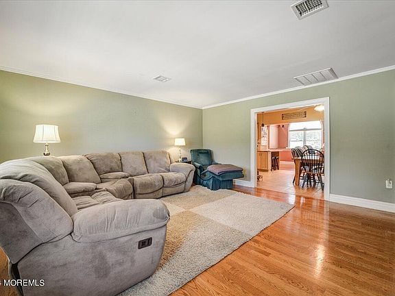 Fantastic and unique mother/daughter opportunity in Bayville. This custom home features 6 bedrooms and 3 full bathrooms, plus a basement that could be finished for additional living space or a potential 7th bedroom. The main level has a living room, updated kitchen with separate dining area, 4 bedrooms, 2 full baths (including the primary suite) and an expansive family room with vaulted ceilings and a sliding door out to the back deck and yard. The in law suite on the second level has 2 bedrooms, a full bathroom, full kitchen and living room with it's own dedicated side entrance and entry way. The house is set on an over sized lot that backs up to the woods for added privacy and there is an in ground pool surrounded with decking, a screen room, pool house and deck. Don't miss this one!