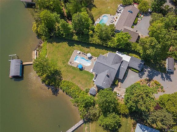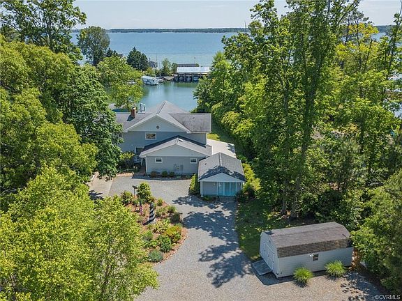 NOT IN A FLOOD ZONE. Minutes to the Bay. Completely Updated & Renovated FURNISHED Waterfront Property on Deltaville's protected Porpoise Cove (South facing, Piankatank side). 3800 square foot retreat-style home features 5 bedrooms, 5 full baths, guest cottage (5th BR, 5th BA), in-ground fiberglass pool, new pump May 2020, paver patio surround, new salt system 2017, new heater 2018. Attached garage, boat house w/ two boat lifts (7500 & 8,500 lbs), dock, & deck on the water. 2nd story added in 2009 & includes a HUGE upstairs great room with "Cheers"-Style built-in bar, vaulted ceiling, & tons of natural light. Renovated kitchen (2014) w/ Coastal Green granite, newer stainless steel appliances (dishwasher, microwave,refrigerator), Jenn Aire Range, chic white cabinetry, recessed lighting, & bar seating. Hardwood flooring throughout w/ tile in all bathrooms, guest cottage & kitchen. 4-Zone HVAC (upstairs replaced in 2014), central vac, newer roof & cedar-look vinyl siding (added 2009). Deep well w/ delicious drinking water. Residents of cove have deeded use of beach at Porpoise Cove Marina, a short walk/bike ride away! Owner/Agent. Profitable weekly VRBO--owner happy to share details