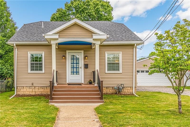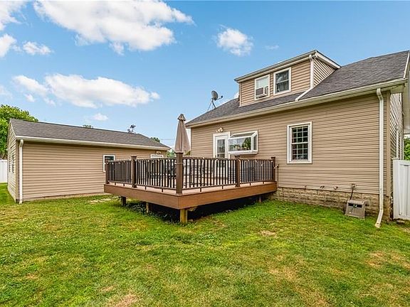 Charming & cozy Cape Cod style home tucked away minutes from the center of Zelie! Walk to restaurants, park, pool, library, shops, more. This home provides quaint, small-town living with private outdoor space. Enjoy summers on your rear deck with fenced-in back yard. Detached garage provides lots of extra space. High ceilings (9-foot) on main level with tall windows & teregren bamboo flooring that spans the front room through the dining room to the kitchen at the rear of the home makes a statement. Your dining room boasts big bay windows that flood the room with natural light & kitchen opens to deck for indoor/outdoor living. Upper-level master suite or guest room with full bath & double bowl vanity is a bonus. Two main floor bedrooms boast two windows each & share a full bathroom. Lots of nice architectural details as arched doorways, and & fans. Well kept & recently updated, w/quick & easy access to commuter routes makes this home a perfect choice for small-town living.