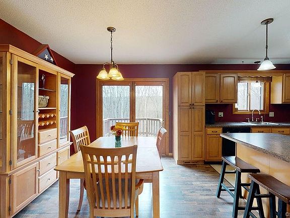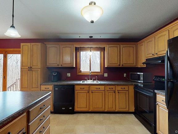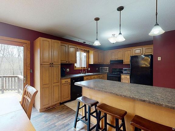 Step into this move-in ready 3 bed, 2.5 bath home that quietly rests on over 1.6 private acres! The updated eat-in kitchen features an island and beautiful cabinets! Vaulted ceiling in living room, with ceiling fan. Master bedroom has its own half bath. Gorgeous and spacious lower level family room has built in shelving, and a very cozy wood burning fireplace with marble surround and beautiful detailed mouldings! This very livable space also features recessed lighting, and plenty of windows that burst with natural lighting! This home also has a two-tiered deck that overlooks the lightly wooded property and an above-ground pool, for the perfect staycation!!! Pool liner was replaced just two years ago. Located very conveniently to RT 2 and area shopping! Shows very well!