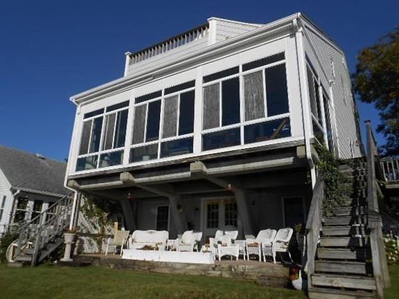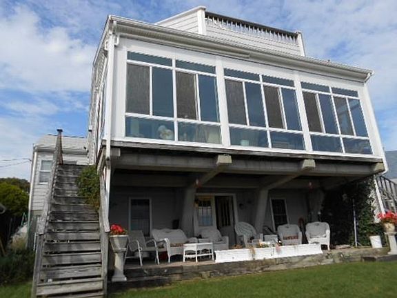 Imagine waking up to the beautiful ocean views that this lovely waterfront home in Pinehurst Beach has to offer. With deep water access you can enjoy all the recreational water activities; you can bring your boat. This home was completely renovated in 1996 with large concrete supports elevating the main home. The warmth of the sun can be enjoyed in the large, heated sunroom providing beautiful ocean views leading out to your deck where you can grille for those summer barbecues. The living room has a beautiful gas fireplace and a buillt-in wet bar . The master bedroom and the 2nd bedroom have sliders to a large balcony overlooking the water where you can sit and watch the rippling waves and seabirds. This home was built to entertain your guests. So many built-ins and so much storage. The walkout basement leads to a large covered patio which overlooks the lovely back yard with steps down to the beach offering mesmerizing views. Pictures don't do it justice; must be seen to appreciate