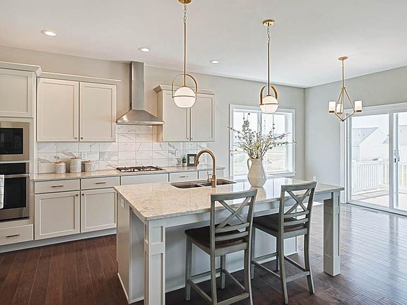 This charming 2-story home in our Winding Creek 55+ community includes a welcoming front porch, 2-car garage, and 9’ ceilings on the first floor. Beautiful hardwood flooring flows throughout the main living areas. To the front of the home is a carpeted study followed by a formal dining room, butler’s pantry, and kitchen. The kitchen is well-appointed with upgraded appliances and cabinets, Cambria countertops with tile backsplash, and a large center island. A sunny breakfast area provides access to a composite deck. Adjacent to the kitchen and breakfast area is the great room with a cathedral ceiling and gas fireplace with stone surround. Tucked quietly to the back of the home, the owner’s suite boasts an expansive closet and private bathroom with two vanities and tile shower. Two additional bedrooms, a full bathroom, and loft space are located on the 2nd floor.