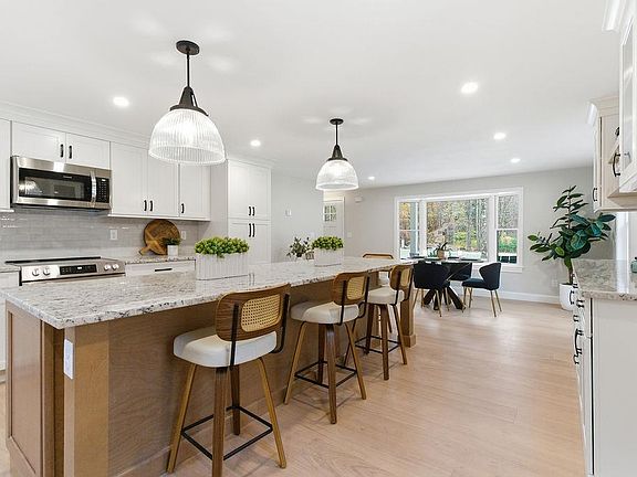 Completely Renovated 4-Bedroom, 3-Bath Home on a Large Flat Lot! Every inch of this home has been thoughtfully redone — offering the perfect blend of modern luxury, energy efficiency, and classic New England charm. Enjoy total peace of mind with a new roof, new septic system, new siding, new HVAC with central A/C, Wi-Fi thermostats, updated insulation in the attic and basement, new paved walkway and new energy-efficient windows. Inside, the home features engineered hardwood floors and a brand-new kitchen with Cambria quartz countertops, Energy star stainless-steel appliances, and custom cabinetry. You’ll find three beautifully updated baths, including a primary en suite with a double vanity and a tiled shower with a frameless glass enclosure. The primary bedroom also features a customized closet system — perfectly designed for organization and style. The partially finished basement with a fireplace offers cozy extra living space, ideal for a media room, office, or playroom. A front farmers porch adds welcoming curb appeal, while the oversized two-car detached garage with storage above provides abundant space for vehicles, tools, or hobbies. Outside, a newly paved driveway and large, level lot make this home as functional as it is beautiful. With a washer and dryer included, there’s nothing left to do but move in and enjoy this better-than-new home!