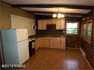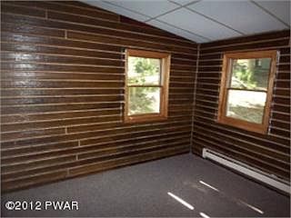 Cabin with wonderful fireplace great privacy yet located walking distance from public swimming beach on Lake Wallenpaupack. Great as starter or vacation or investment/rental property. Clean and neat. Come and see. No community/no dues.