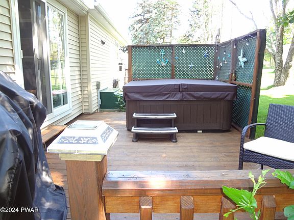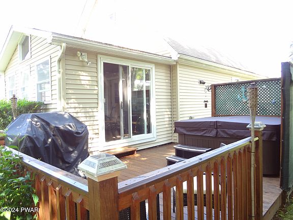 IMMACULATELY MAINTAINED AND MOVE-IN READY HOME! MINUTES TO BEAUTIFUL LAKE WALLENPAUPACK! Motivated Sellers! This 3 Bedroom, 2.5 Bath home sits on a beautifully manicured double lot in Tranquility Falls. The main level features a large Primary Suite with a full Bathroom, Living Room, Dining Area, Updated Kitchen and a Laundry Room with a 1/2 Bath. There are two additional Bedrooms and a Full Bath on the Upper Level. The spacious enclosed porch, located off the Kitchen, is the perfect spot to enjoy your coffee, cocktails, meals or just to relax and enjoy the peacefulness of the Poconos. Take it outside to the back deck and sit in the hot tub! You will love the park-like setting of the property with a garden, greenhouse, small golf putting green, a dog run area and more! Need more room? The full heated unfinished basement is perfect for future expansion. Tranquility Falls Community has a pool and clubhouse. Come take a look today!
