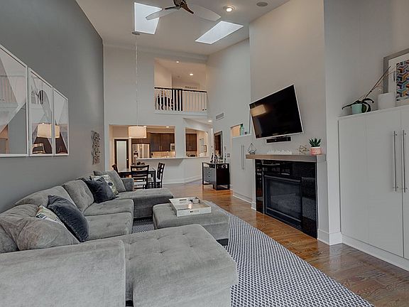 - Living Rm Feat: Wood Floors, Walkout, Window Treatments, Fireplace, Bookcase, Skylight