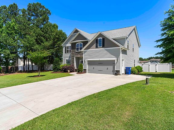 Step into a foyer that screams Welcome Home! Huge flex room that can be used as an office, playroom or media room. Ample options! The kitchen is the ''heart of the home'' with cabinets galore. Huge formal dining room is right off the kitchen. Open concept living room with lots of natural light, electric fireplace and built-ins. Upstairs you will find a Jack & Jill bed and bath, 2 additional bedrooms and a bath for guests. The primary suite is an oasis with a separate sitting room area. Laundry is conveniently upstairs with all the bedrooms. Outside you will find a stone patio with a fire pit in the newly fenced in BIG backyard. All carpet upstairs replaced and full house repaint including kitchen cabinets in 2022. Minutes away from schools, shopping and much more. This home has been beautifully maintained-- Come see for yourself in the heart of growing Angier!!!