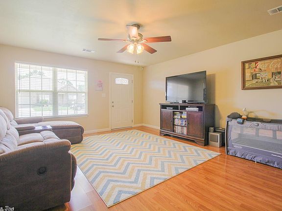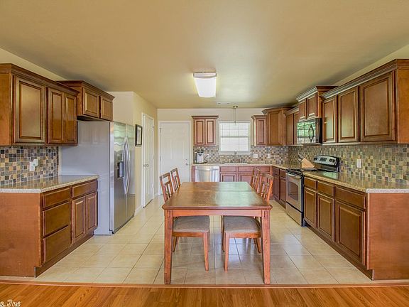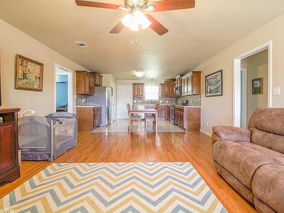Perfect 1st home*3 bdrm/2bath split bedroom plan*Large open living/dining/kit area*Spacious master bedroom!*Lots of wood & tile*Amazing stone back splash in kitchen*Huge fenced rear yard*Covered porches*Architectural shingles*22 X 21 garage with extra shelved storage*This family out-growing this house!