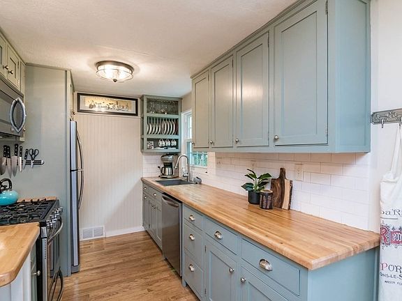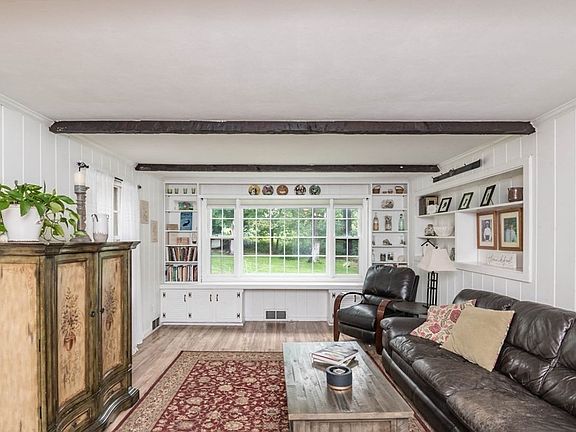This delightful Cape combines proximity to amenities with the sought-after privacy homeowners desire. Sunken family room boasts picture windows in the front & back, with built-ins to showcase cherished possessions. This space leads to the remodeled kitchen, featuring wooden countertops, modern appliances, & a handy plate & glassware rack. Dining room, enhanced by updated lighting & cozy fireplace, an updated full bathroom with tiled tub/shower, wainscoting, newer vanity, & updated lighting, primary bedroom with wood floors & a second bedroom that has been cleverly transformed into a remote workspace & laundry room complete the first floor. Upstairs, discover another renovated full bathroom with shower & wainscoting, along with two additional bedrooms. Enjoy entertaining in this yard adorned by trees, garden beds, fire pit, large deck & a shed to store your tools. Town center with shopping, restaurants, & more only minutes away. Highest & best offers due Mon, Sep 18 at 8pm (EST).