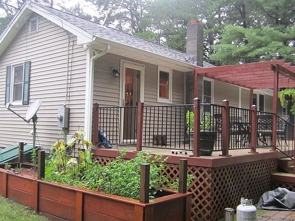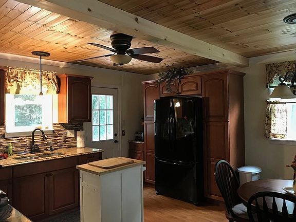 Charming ranch style home with a beautiful farmers porch. This property has two bedrooms with ample closet space and an updated bathroom. The kitchen features cherry cabinets, glass mosaic tile backsplash, granite counters and wood plank ceiling. The living room is spacious with built-in shelves, two skylights and cathedral ceilings. Enjoy the large deck and peaceful yard that overlooks Crooked Brook. The interior has been newly painted. If you are looking for move-in ready, this is the perfect home for you! Subject to the seller finding suitable housing. No flood insurance required.