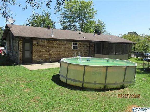 ENJOY THIS FULL BRICK HOME, 3 bedrooms, 1 bath with colorful paint, ceramic tile and crown molding through out. Spacious corner lot, front yard has mature trees and roomy fenced in back yard hosts Above Ground Swimming Pool, tool shed and Screened In Porch. Central Air, Gas Heat and Thermal Windows. Just off of HWY 431 in Abertville, A short drive from Guntersville or Arab!